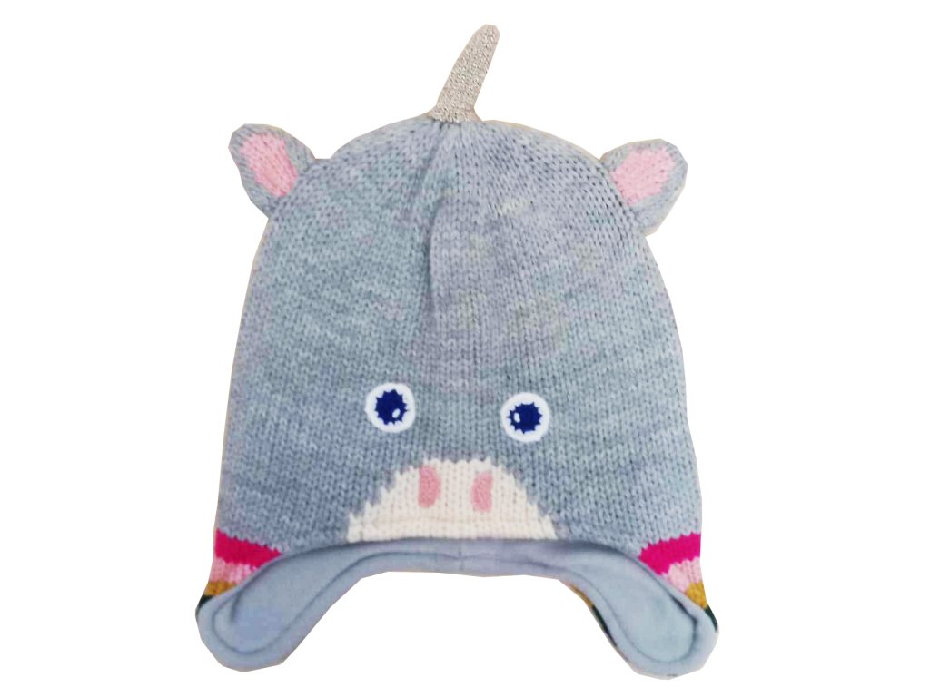 Čepice Boden - šedá s motivem jednorožce, s podšívkou. Kryje uši.